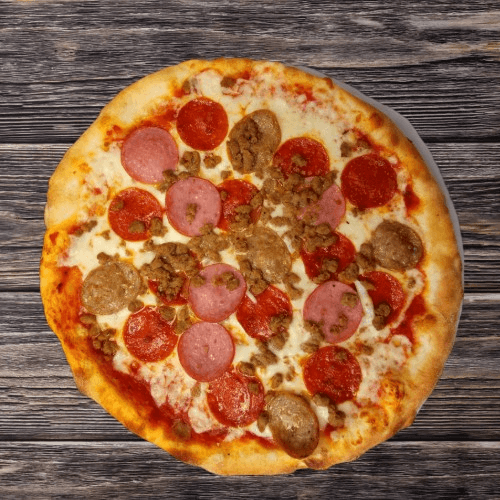 Pepperoni, sausage, canadian bacon, hamburger