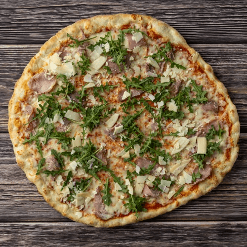 Prosciutto, arugula, shredded parmesan.